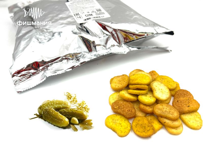 Отобранные специи и травы, создают аромат, напоминающий свежий маринад маринованных огурцов. Каждый кусочек гренки пропитывается этим вкусом, добавляя нотки освежающего и легкого аромата к каждому прокусу.